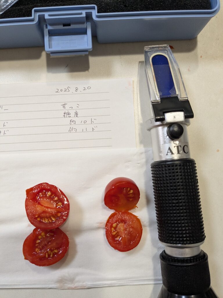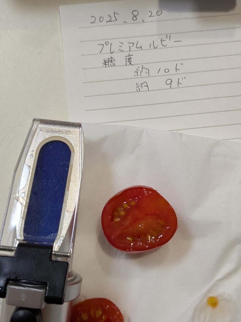 完熟になるとおいしい品種で、糖度は約8~9度となりました。
